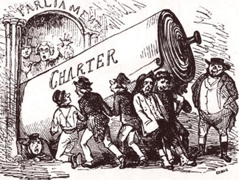 d) Paralelo a esto surgió el cartismo (1838-48) movimiento político obrero que envió la Carta Pueblo al Parlamento británico con sus reivindicaciones y cambios políticos, sin embargo, sus peticiones fueron rechazadas.